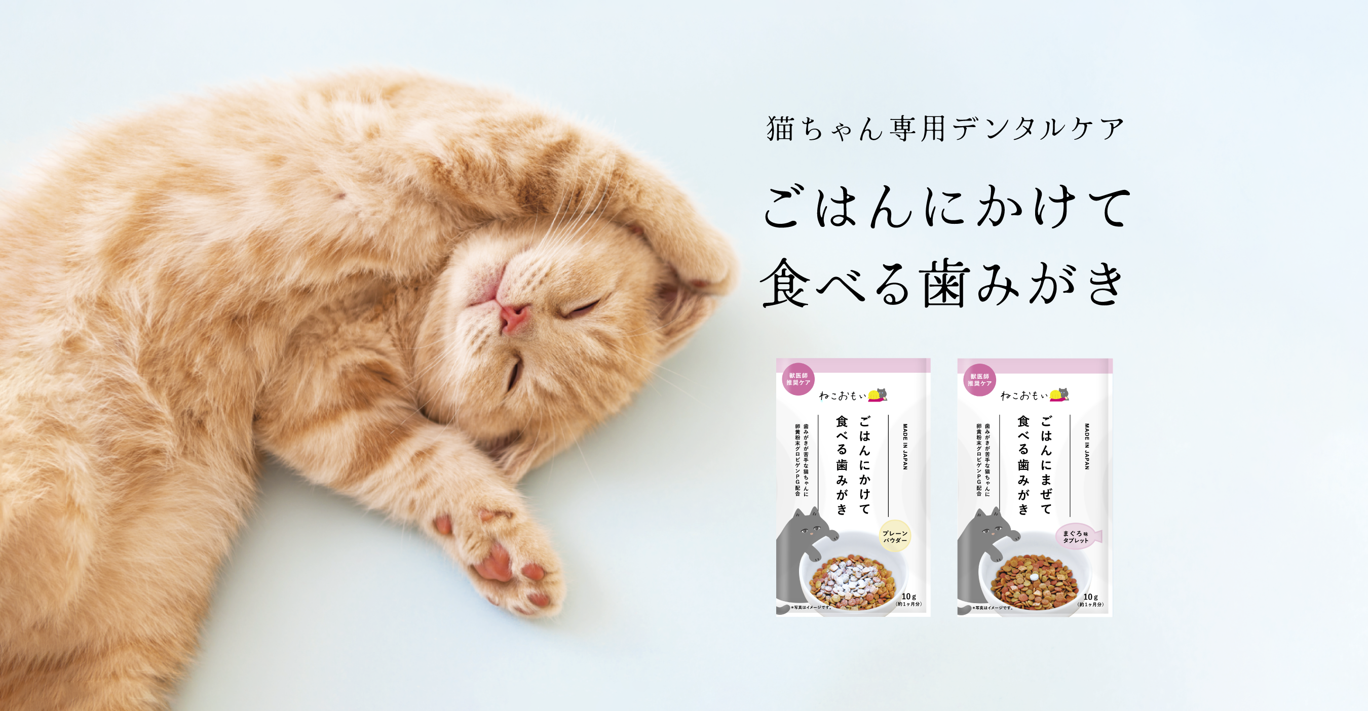 「ねこおもい」は、なかなか思い通りに歯みがきをさせてくれない猫を想ってつくった猫専用デンタルケア商品です。